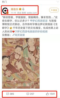 敦煌市博物馆官方跨界授权机构—鲜活万物与梦幻西游的合作为玩家们打造一个饱含历史气息的梦幻盛宴。合作不止是吸引了大量的游戏玩家,也在各个平台上产生了高热度的讨论。